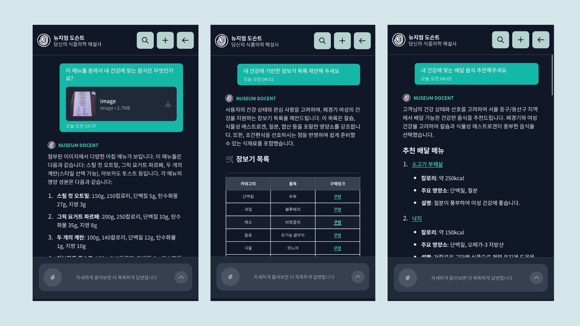 - “내 건강 상태에 맞는 식사 메뉴는?”